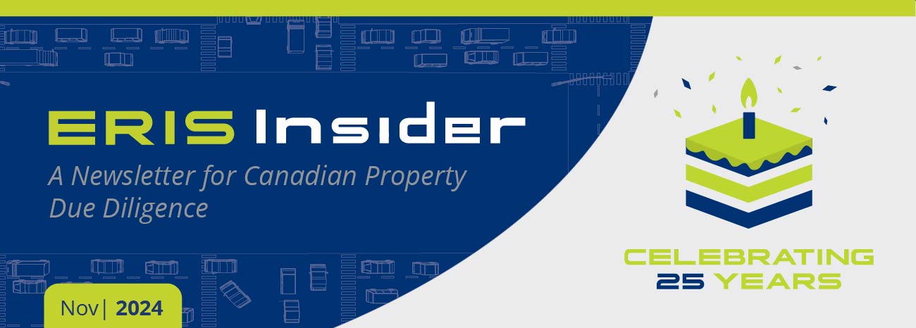 We couldn’t let the fall season pass without expressing our gratitude to all our clients and partners across North America for their tremendous support of ERIS’ 25 years in business. Yes, ERIS has served the due diligence market with environmental and property risk data and products in Canada since October 1999, and last year, we celebrated 10 years serving the U.S. market!