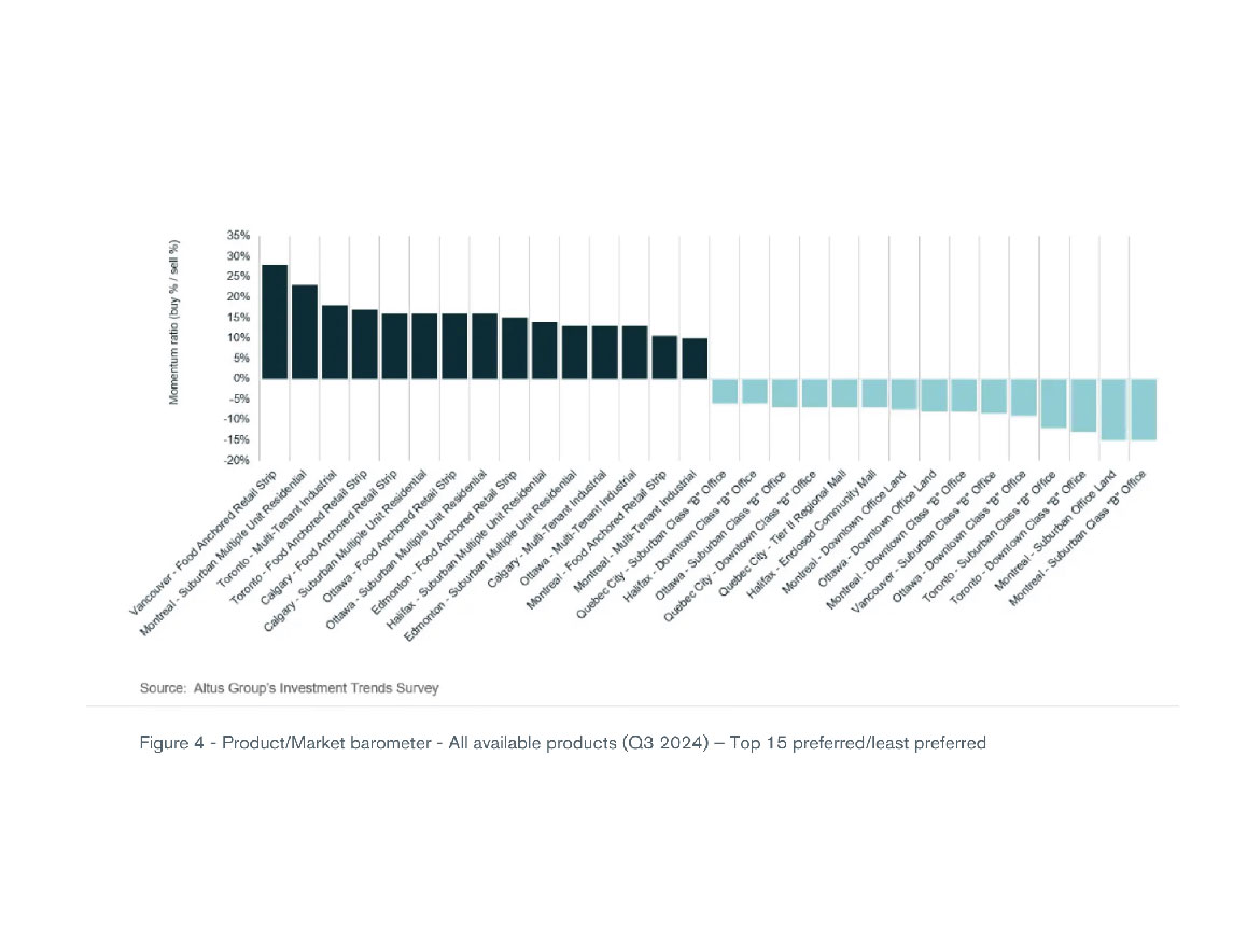 - The top three preferred markets for investors across all asset classes were Vancouver, Calgary, and Edmonton, while Toronto slipped to fourth place.