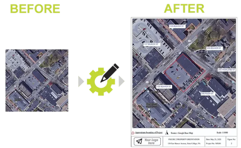 Within Xplorer, click on the Figure Creator tool, and crop, annotate, title, and sort your images. Create perfect figures easily using your historical imagery, maps, site plans, and photos. Customize and save, then generate your figures and photo logs.