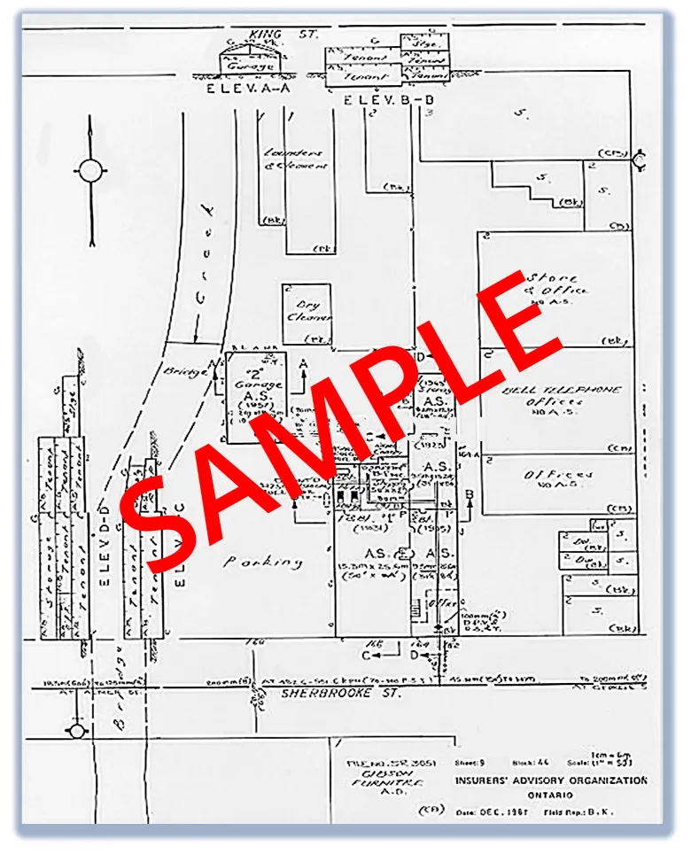 Property Underwriters Site Plans have been produced by the Insurers’ Advisory Organization for the past 100 years. These individual design drawings and field surveys identify the location, capacity, and contents of above and below-ground storage tanks, chemical storage, and other forms of environmental hazards.