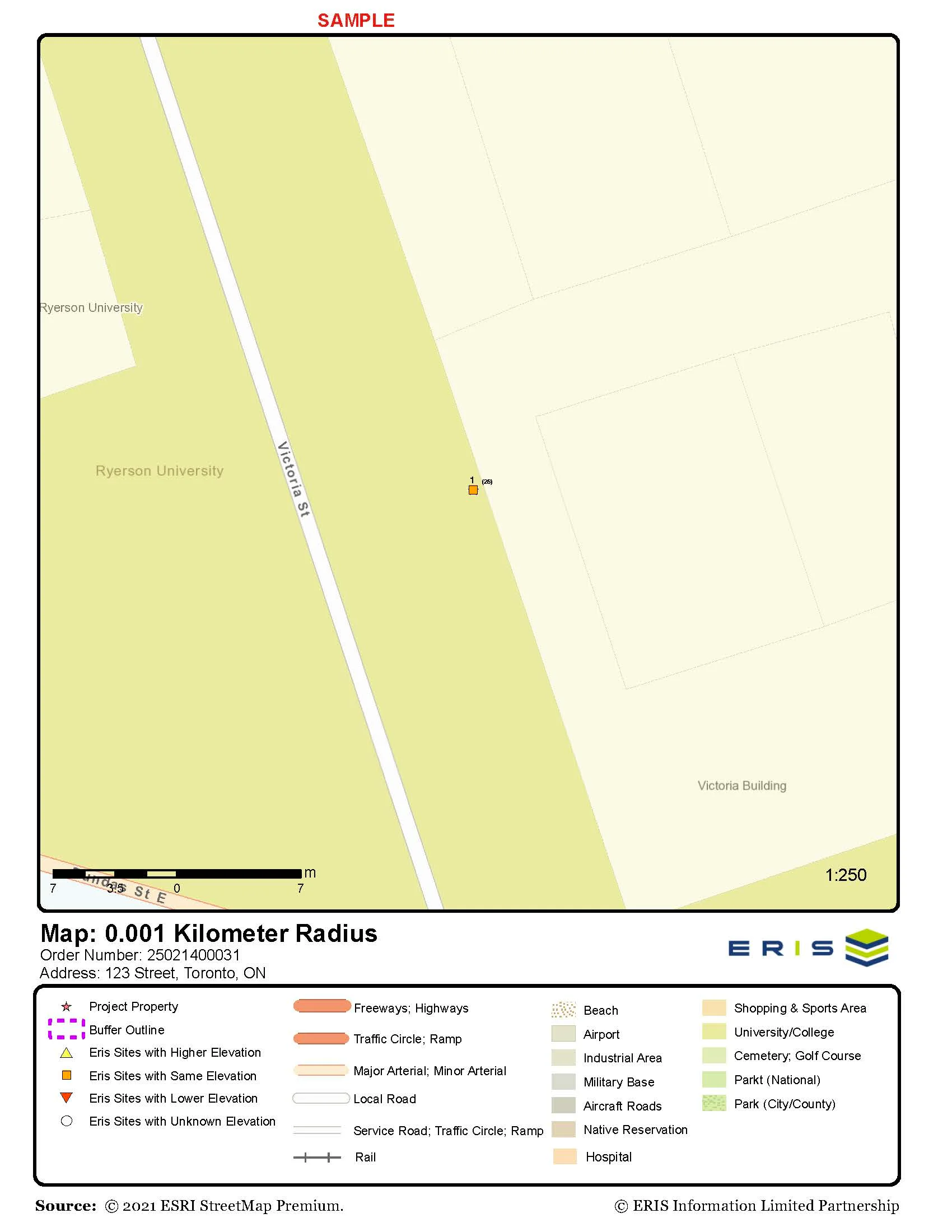 For larger sites that do not fit within the standard 250m radius, a CUSTOM report will be required. The delivery timeline for this report is the next business day.